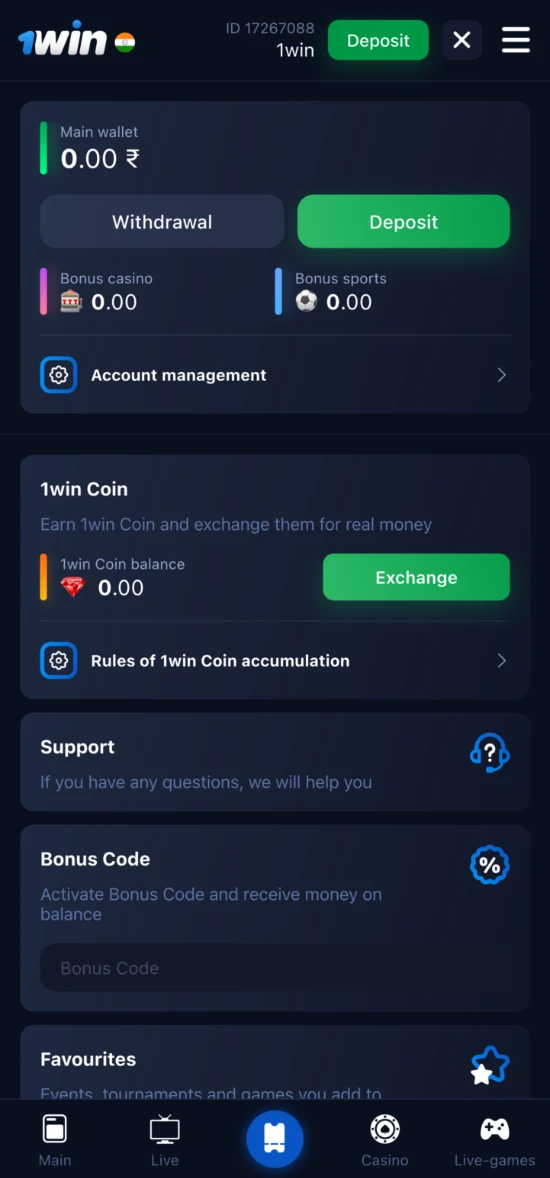 - Download the 1 win app for iOS;